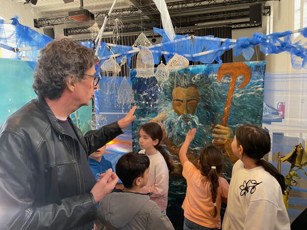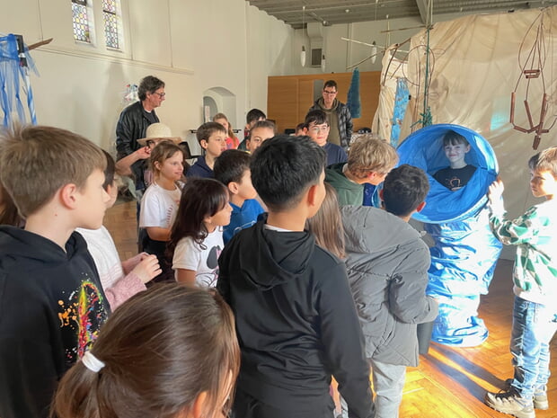Am Montag, 2. März 2026 besuchten 26 Kinder aus drei verschiedenen AGs die Kunstausstellung im Klosterhof „Fragiles Meer-fragiler Mensch“.